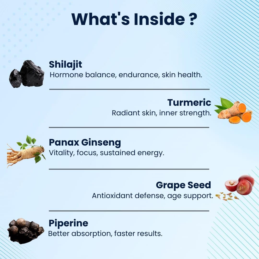 EG Capsules (60 count) | Natural Daily Supplement | Supports Skin Radiance, Energy & Inner Balance | Powered by Shilajit, Curcumin, Ginseng & Grape Seeds